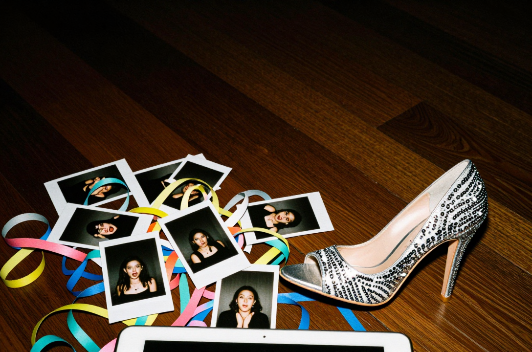 * The Booth’s Own Debris: A pile of photo booth printouts scattered haphazardly on a table, perhaps with a stray glass on top of them. This is the ultimate meta-shot.Step 2: Compose Using the Rule of Thirds